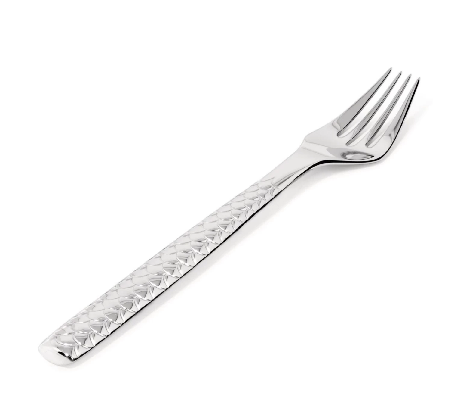 Geniet tijdens het diner van een heerlijke gebakken vis met de Alessi visvork Colombina Fish. Deze vork komt uit de schitterende Colombina Fish bestekserie die speciaal is ontworpen door de designers Doriana en Massimiliano Fuksas. Deze collectie kenmerkt zich door het unieke, decoratieve schubben patroon op de handvaten van het bestek, waardoor het direct duidelijk is dat het gaat om visbestek. Daarnaast is de vork vervaardigd uit sterk en gepolijst 18/10 edelstaal. Door het gebruik van dit materiaal is al het bestek zowel vaatwasser- als krasbestendig. De Alessi visvork Colombina Fish is een ware uitblinker op iedere tafel en bestelt u eenvoudig in onze webshop!