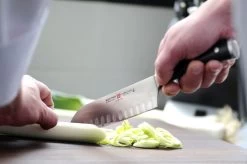 Na gebruik mogen de roestvrijstalen messen de vaatwasser in. Was de eikenhouten plank wel even met de hand af in een sopje van warm water en afwasmiddel. Haal er een droogdoek overheen en laat de plank rechtop verder drogen.