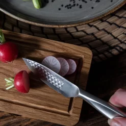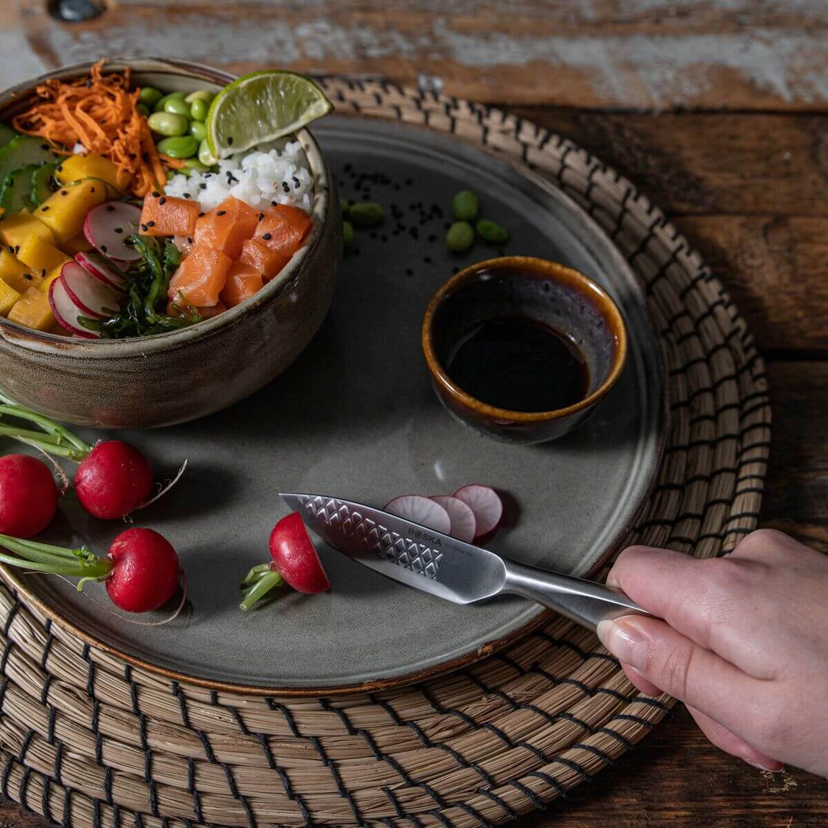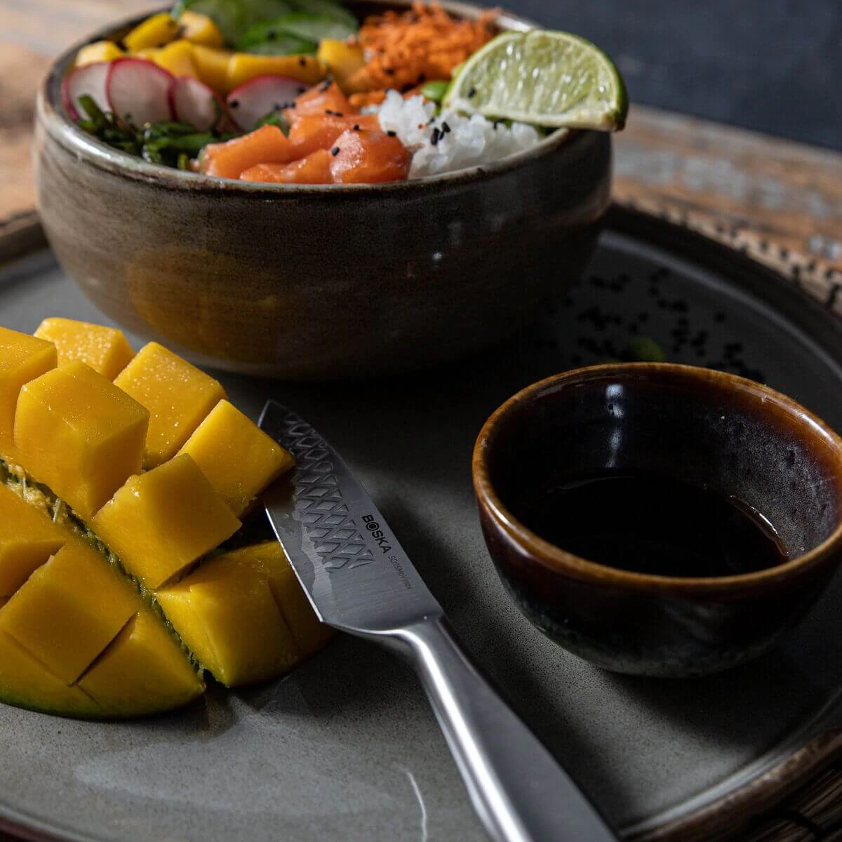 Het Boska Officemes Monaco+ 8 cm is een handzaam groentemes die perfect is voor precisiewerk. Het mes heeft een ideale hardheid en een perfecte balans tussen het mes en de holster. Hierdoor wordt het snijden nog makkelijker gemaakt en gaat het mes ook lang mee zonder zijn scherpte te verliezen. Snijd je mango, wortel of elk ander smaakvol stuk groente of fruit in de leukste vormpjes. Je kan het zo gek maken als je zelf wilt met dit officemes.