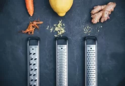 De Boska Rasp Grof Monaco+ is de ideale rasp om snel vlokken van jouw kaas te maken. Deze rasp is geschikt voor kaas, kokos, chocolade en wortel. Door de rubberen onderkant zet je hem gemakkelijk ergens op en glijdt hij niet weg. Dat maakt deze rasp ook erg veilig. Een ideale grove rasp voor iedere keuken dus!