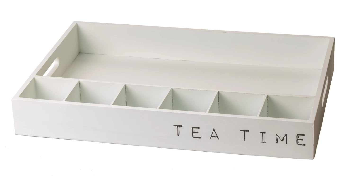 Dit dienblad van Cosy @Home is een dienblad maar heeft ook theevakken voor uw theezakjes. Hierdoor hoeft u geen theedoos meer aan te schaffen! Het dienblad heeft zes theevakken waar zes verschillende theesoorten in kunnen. Combineer meteen uw kopje thee met een theezakje!
