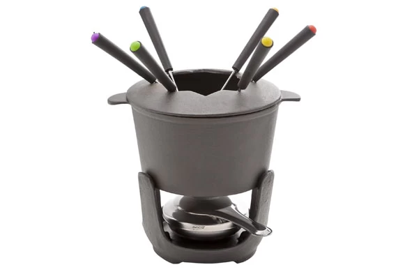 Deze complete fondueset bevat een pot met vorkhouder, brander, branderhouder en vorkjes voor 6 personen. De pot is vervaardigd uit gietijzer voor een gelijkmatig bakresultaat en geschikt voor alle warmebronnen. De vorkjes zijn voorzien van dopjes in verschillende kleuren waardoor elke gast zijn vork gemakkelijk kan herkennen. Door de speciale vorm van de vorkhouder blijven de vorkjes ook mooi op hun plaats zitten. Geschikt voor brandpasta.