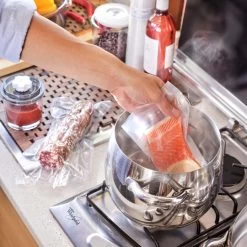 Garandeer dat er geen lucht of vocht meer bij je voedsel kan komen door te vacumeren met deze vacumeerzakken van Espressions. Door te vacumeren kan je voedsel tot wel vijf keer langer bewaren en de smaken blijven behouden. Met de dikte van 240 micron zijn deze zakken van hoge kwaliteit en ze zijn BPA vrij. De formaten van deze zakken zijn 20 bij 30 centimeter en het zijn er 100 stuks. Ook geschikt voor sous vide koken! Let op: het sous vide koken is veilig en getest voor 100? voor 1 uur, 90? voor 8 uur, 70? voor 72 uur.