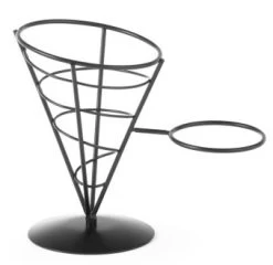 Serveer uw frietjes in stijl met een Hendi frietzakhouder met saushouder. Leuk voor een feestje of om patatdag met het gezin nog leuker te maken.
