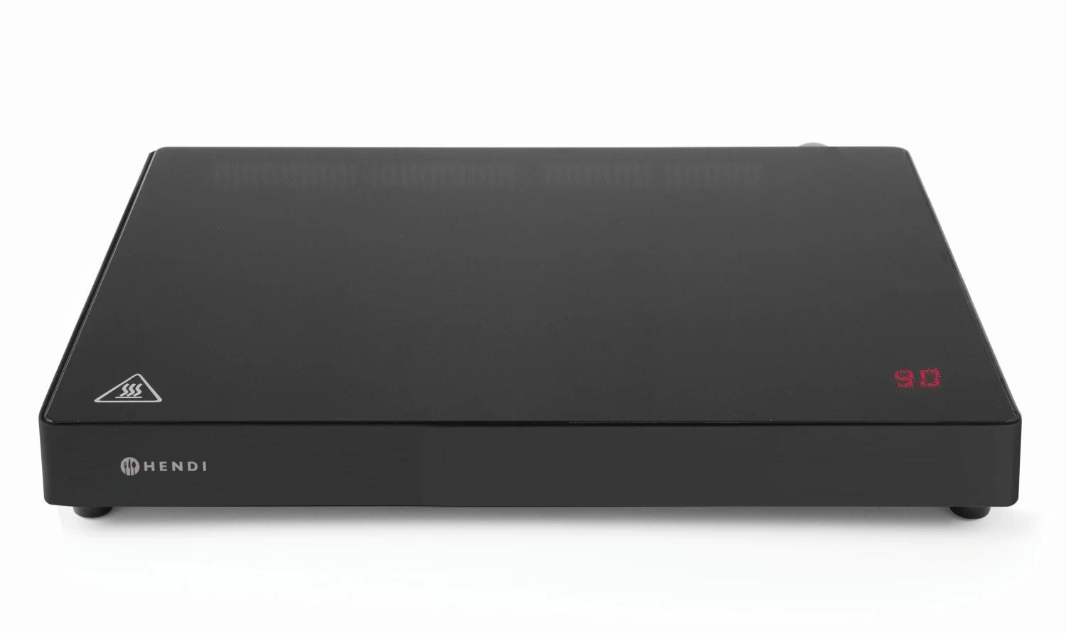 Unieke inductie warmhoudplaat die werkt door middel van een rechthoekige inductiespoel waardoor ook meerdere pannen erop geplaatst kunnen worden. Vermogen in 11 stappen regelbaar d.m.v. draaiknop. Temperatuur bereik: 40-100°C. Uitgerust met elektronische oververhittingsbescherming. Toegestane maximale belasting van de kookplaat: 15 kg.