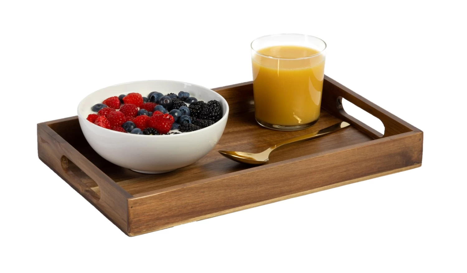 Met het Jay Hill dienblad geniet je lekker van je ontbijtje op bed. Het dienblad heeft een afmeting van 35 x 22 cm en is daarmee geschikt voor één persoon. Het dienblad is gemakkelijk te tillen door de opstaande randen met opening. Het dienblad is ook te gebruiken als decoratie, om bijvoorbeeld een aantal kaarsen op te zetten.