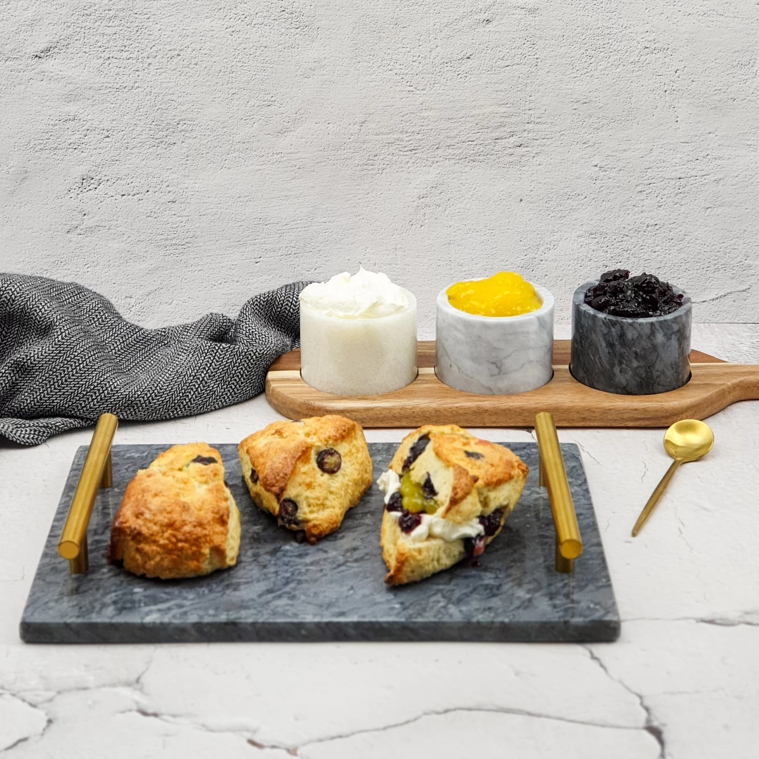 Serveer je tapas hapjes, borrelnootjes of andere producten in deze marmeren schaaltjes! De serveerplank is speciaal gemaakt voor de schaaltjes, waardoor ze stevig in de plank komen te staan. Je brengt je hapjes gemakkelijk heen en weer dankzij het handvat aan de serveerplank. De bakjes kunnen na gebruik in de vaatwasser.