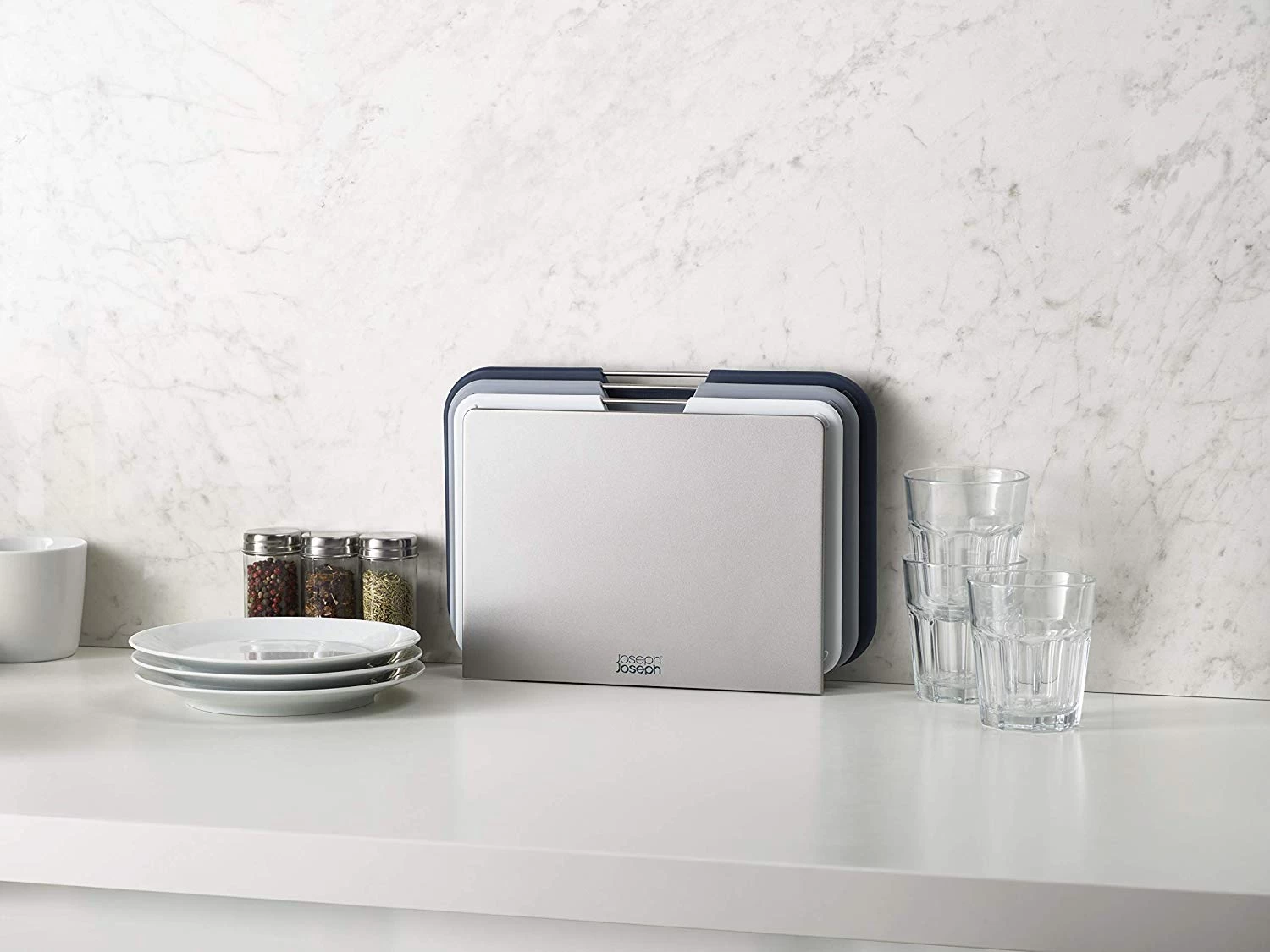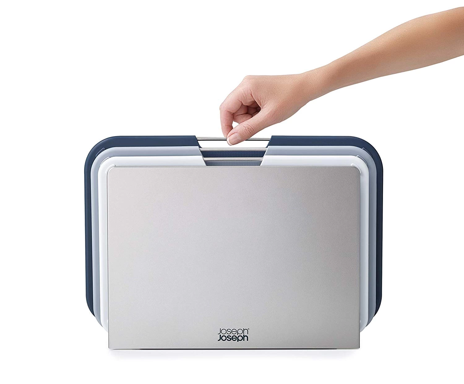 Deze mooie Joseph Joseph snijplankenset wordt geleverd met een handige opbergstandaard, deze opbergstandaard geeft elke keuken een stijlvolle look en maakt de snijplanken ook gemakkelijk toegangbaar. Elke plank heeft een andere maat die geschikt is voor een reeks aan voedselvoorbereidende taken. De opbergstandaard houdt elke plank uit elkaar, laat lucht circuleren voor een gelijkmatige droging en bevat antislipvoetjes.