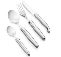 Het stijlvolle Laguiole bestekset is ontworpen en gefabriceerd in Frankrijk. Het bestek is prachtig vormgegeven en heeft door de elegante versieringen op het heft een klassieke uitstraling. Het bestek is gemaakt van hoogwaardig roestvrij staal en heeft een stevige handgreep die comfortabel in de hand ligt. De bestekset is geschikt voor zes personen en bestaat uit 24 delen. De Laguiole bestekset wordt geleverd in een houten bestekcassette.