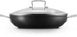 Deze Le Creuset Hapjespan Les Forgees is een ondiepe pan met de beste antiaanbaklaag ooit. De pan heeft een diameter van 28 centimeter en een inhoud van 3.2 liter. Het hard geanodiseerd gesmeed aluminium creëert een efficiënte warmtegeleiding en – verdeling om gelijkmatig te kunnen koken. Deze hapjespan is ideaal voor gezonder koken en het voedsel komt eenvoudig los, zodat je weinig of geen vet hoeft te gebruiken. Deze pan heeft een glazen deksel die het vocht en de smaak in de pan houdt, zodat het eten fantastisch smaakt.