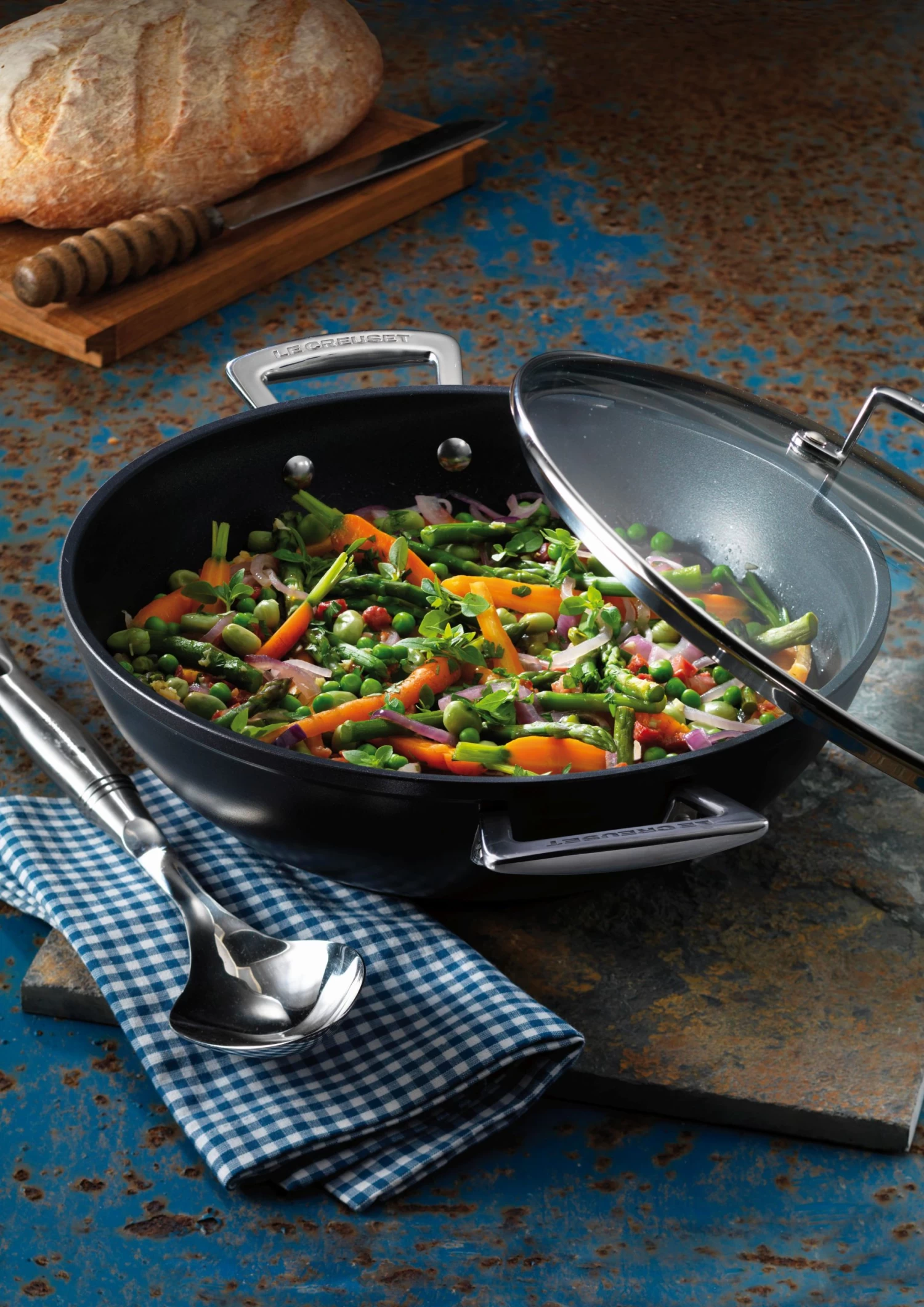De Les Forgées TNS collectie van Le Creuset staat bekend om hun beste antiaanbaklaag ooit! Deze antiaanbaklaag is in een onafhankelijk laboratorium getest op slijtvastheid bij gebruik van metalen keukengerei. De antiaanbaklaag is 4 x sterker, PFOA-vrij en kan alle vormen van bakken aan, zelfs zonder vet of olie. De collectie bestaat uit een uitgebreid assortiment aan verschillende pannen, allemaal voorzien van de beste antiaanbaklaag ooit!