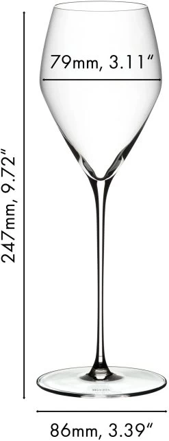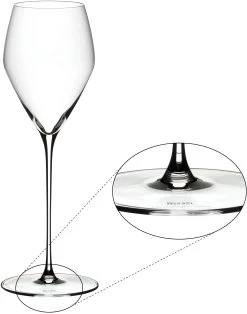 Riedel Veloce is een indrukwekkende ontwikkeling op basis van state-of-the-art technologie. Het glas is hoger dan de Riedel Extreme collectie en heeft een dunnere steel en fijnere kelken. Een speciaal ontwikkelde machine, in de fabriek van Riedel in Weiden, maakt het mogelijk stelen te trekken die gelijk zijn aan die welke door een meester-glasblazer met de hand worden gemaakt. De basis, met een diameter van 100 mm, is een nieuwe standaard voor grote glasvormen en is het maximum dat machinaal kan worden geproduceerd.