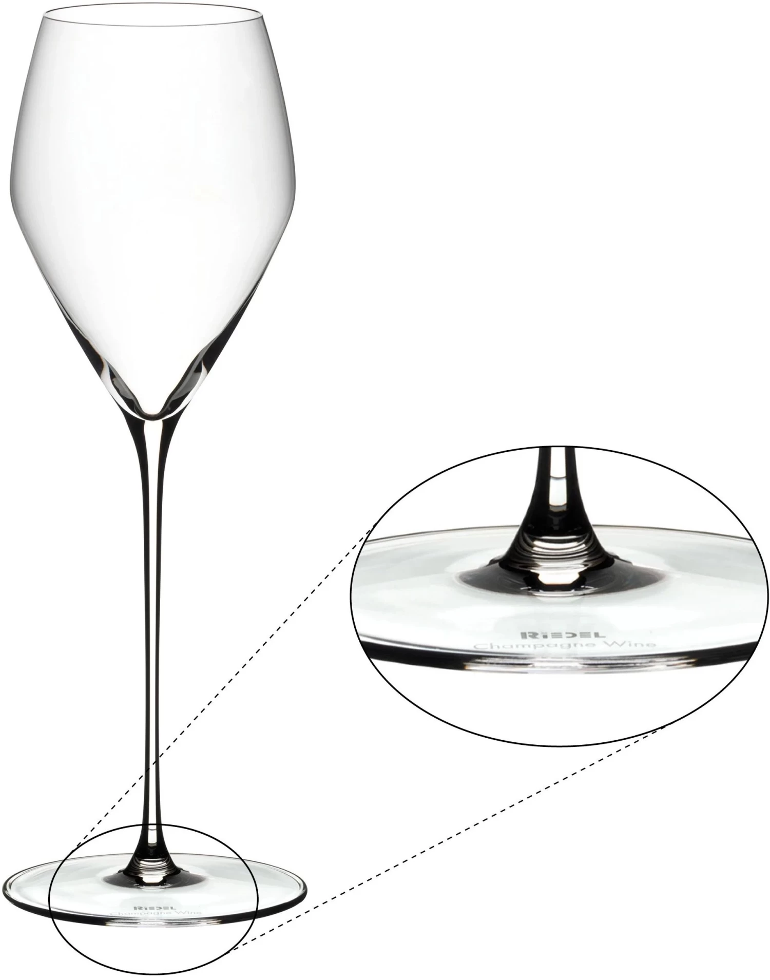 Maximilian Riedel koos de Italiaanse naam “Veloce”, wat “snel” betekent, als verwijzing naar de moderne machinetechniek, die het mogelijk maakt, een in vele opzichten handgemaakt glas op de machine te brengen en snel en in grote hoeveelheden te produceren. Een eerbetoon aan de technologie, aangezien glasblazen met de hand een afnemend ambacht is geworden.