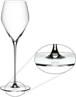 Riedel Veloce is een indrukwekkende ontwikkeling op basis van state-of-the-art technologie. Het glas is hoger dan de Riedel Extreme collectie en heeft een dunnere steel en fijnere kelken. Een speciaal ontwikkelde machine, in de fabriek van Riedel in Weiden, maakt het mogelijk stelen te trekken die gelijk zijn aan die welke door een meester-glasblazer met de hand worden gemaakt. De basis, met een diameter van 100 mm, is een nieuwe standaard voor grote glasvormen en is het maximum dat machinaal kan worden geproduceerd.