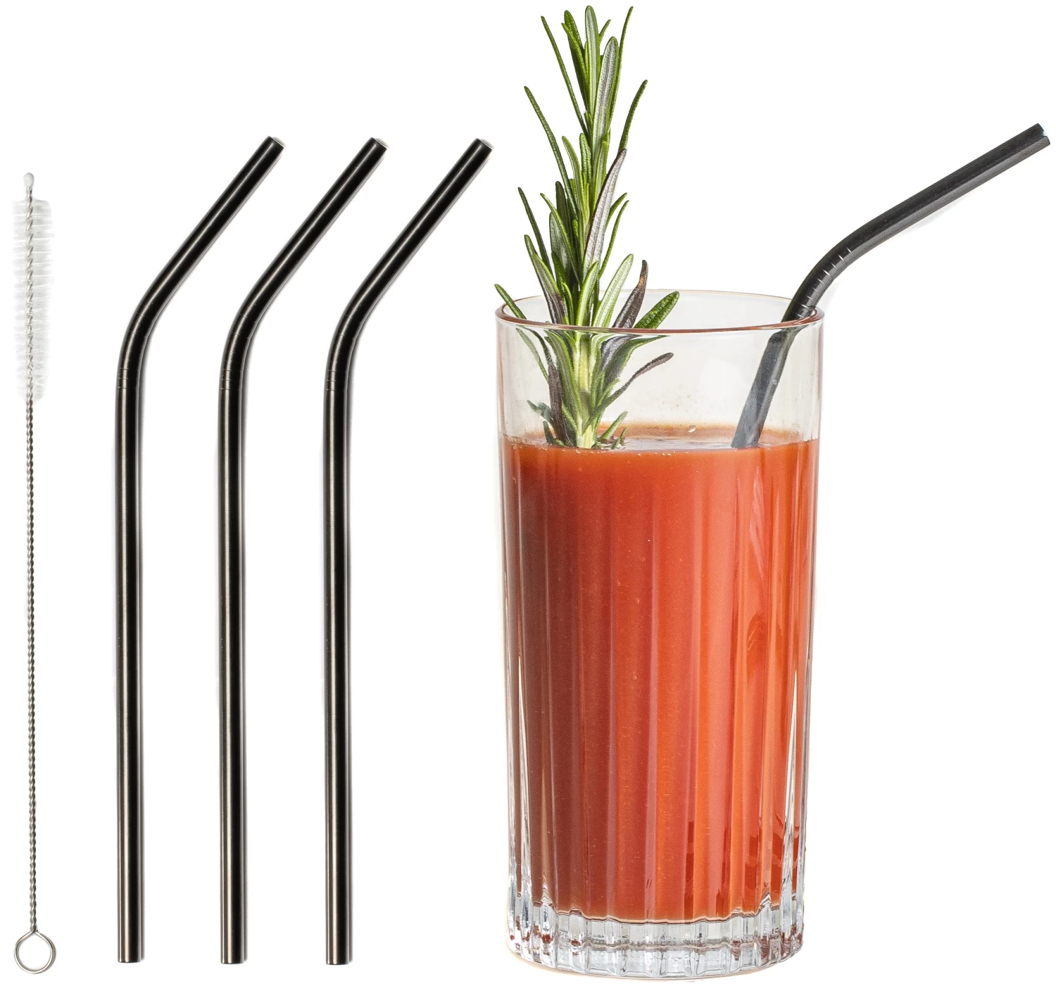 Zijn kartonnen en plastic rietjes die slap worden ook zo’n ergernis voor jou? Dat snappen wij helemaal. Met deze herbruikbare Cookinglife rietjes is een kartonnen smaak verleden tijd! Geniet optimaal van jouw drankje met deze zwarte rietjes gemaakt van RVS. Deze rietjes van 21.5 cm zijn gebogen en daardoor ook geschikt voor het lagere glaswerk. De set bestaat uit 4 stuks.