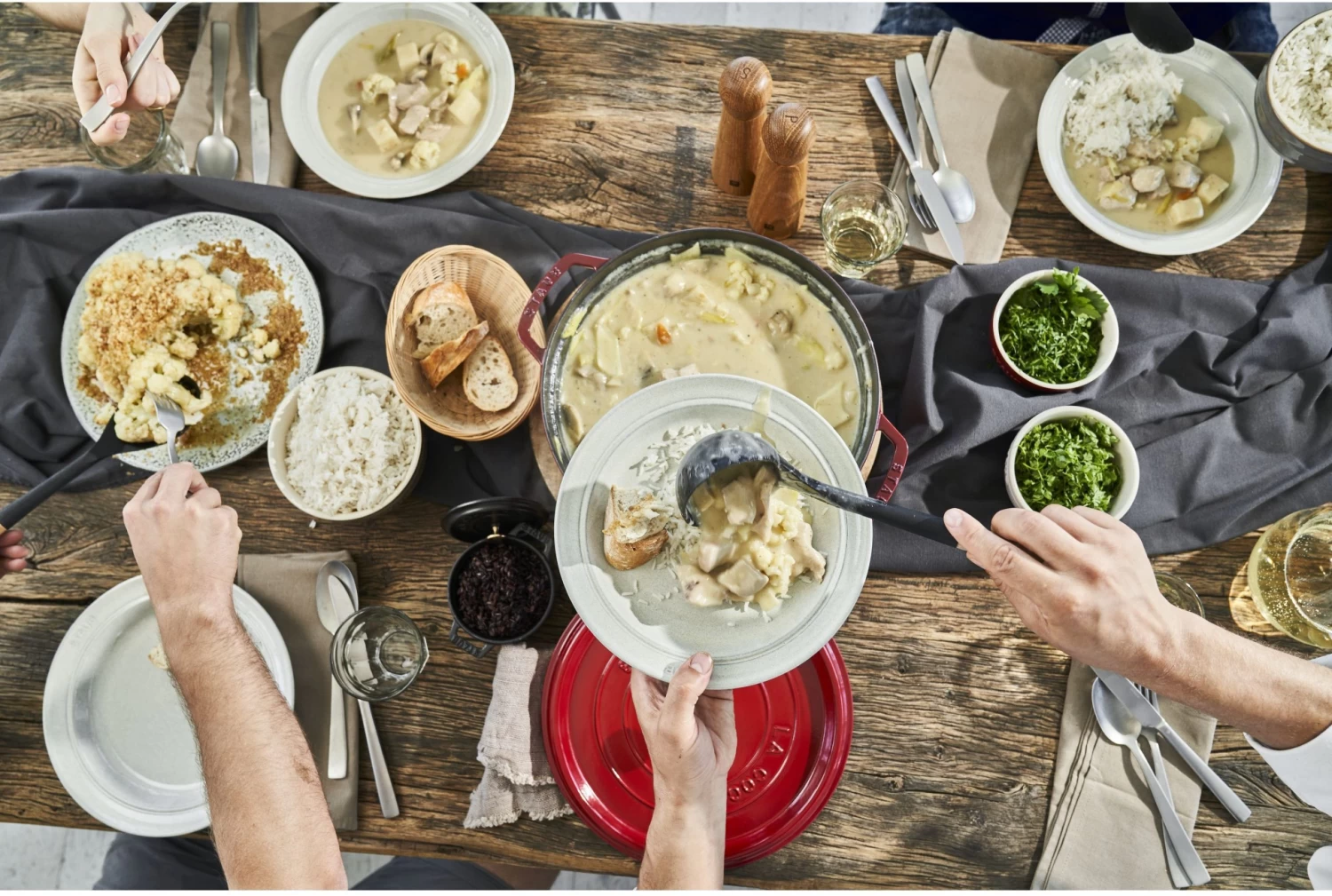 Gietijzeren kookgerei wordt al eeuwen gebruikt, onder andere omdat het uiterst energie-efficiënt is. Het materiaal staat erom bekend dat het warmte uitstekend geleidt en opslaat. Zo ontwikkelt het gerecht dat erin wordt bereid onweerstaanbare braadaroma’s. Maar ook koude gerechten hebben baat bij deze uitmuntende eigenschappen van gietijzer: ze blijven urenlang koud en dat is ideaal voor tuinfeestjes op zonnige dagen.