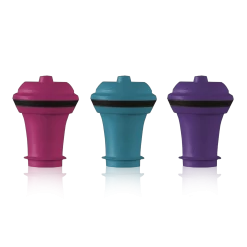 De Vacu Vin Wijnstopper Vacuum Wine Stopper in de kleuren roze, paars en blauw zijn te gebruiken om een wijnfles vacuum af te sluiten. De wijnstopper kan worden bevestigd met behulp van de Vacu Vin wijnpomp. De wijnfles is vacuum als er een klik geluid te horen is. De wijnfles is met behulp van de wijnstopper 10 dagen houdbaar. Het oxidatie proces duurt langer doordat de fles vacuum is.
