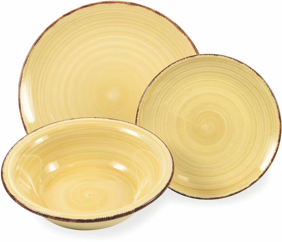 Met de Villa d’Este Serviesset Acquerello – 18-delig / 6 personen wordt het eten een feest! Deze serviesset bestaat namelijk uit Diverse kleuren, waardoor jij een vrolijke tafel dekt! Het servies is gemaakt van Aardewerk en is geschikt voor 6 personen. Daarnaast is het ook nog met de hand geschilderd, waardoor elk stuk uniek is! Na het gebruiken van de Villa d’Este Serviesset Acquerello – 18-delig / 6 personen kunnen deze eenvoudig worden gereinigd in de vaatwasser. De serviesset bestaat uit: