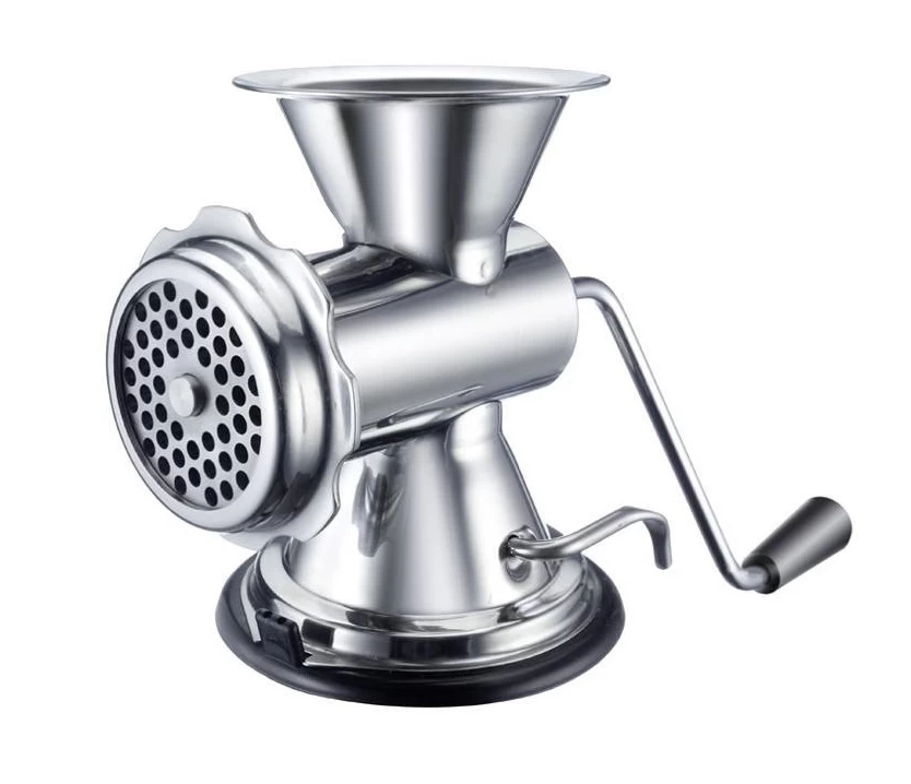 Met deze luxe Westmark Gehaktmolen Set maak je heel makkelijk gehakt. De gehaktmolen is gemaakt van roestvast staal, dus je kunt ‘m gewoon in de vaatwasser doen. De zuigvoet zorgt ervoor dat hij stevig op elk glad oppervlak blijft staan. De gehaktmolen heeft dezelfde grootte als de Westmark Gehaktmolen Gr. 8, maar deze heeft meer extra’s zoals 3 rvs gehaktschijven van ø 4, ø 5 en ø 8 mm, een worst trechter en RVS koekjesschijf!